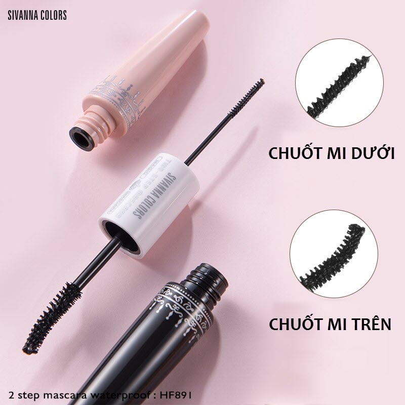 – Mascara 2 đầu chải mi trên và dưới Sivanna kết hợp 2 bước trong 1 với thiết kế 2 đầu chải. Một đầu chải lớn giúp chải mi trên và 1 đầu chải nhỏ giúp chải mi dưới. Đem bộ lông mi dài và dày cong cao vút. Với độ bền lâu trôi – kháng nước và đặc biệt không bết dính.